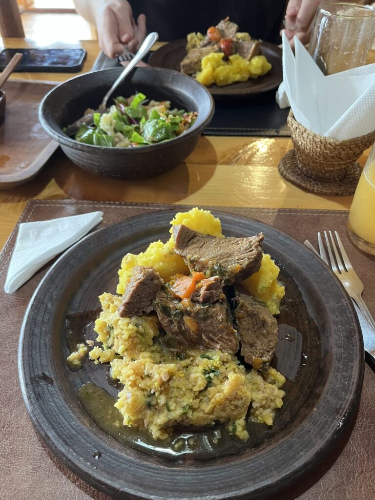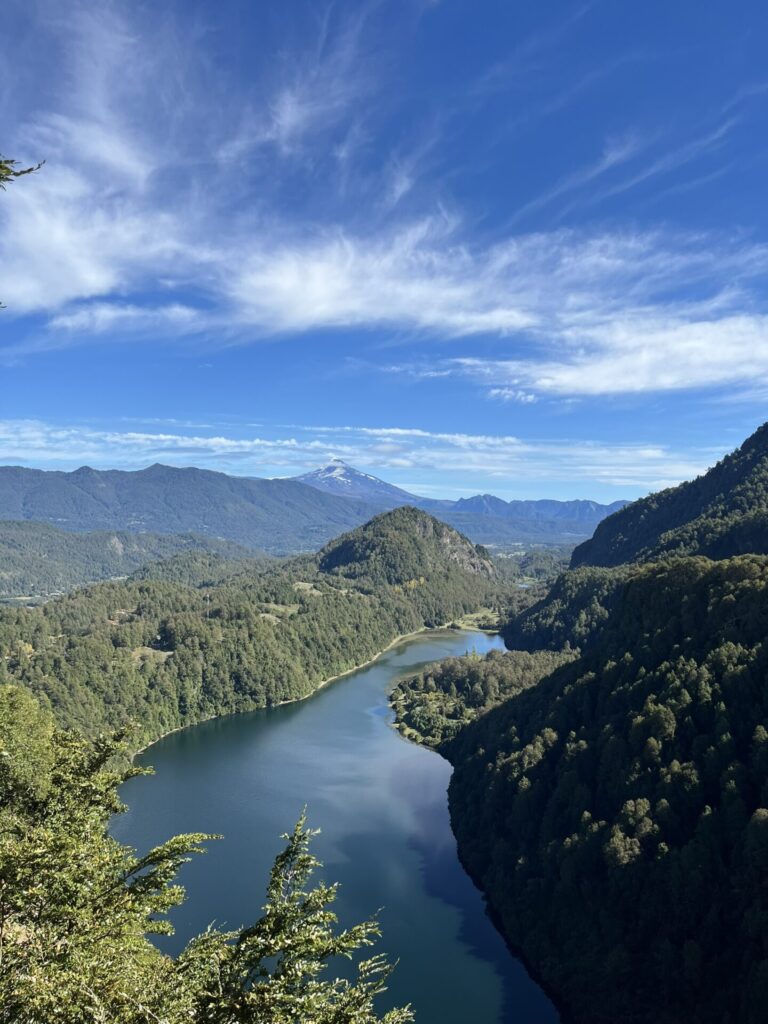 Bekannt ist die Region auch für ihre indigene Bevölkerung, den Mapuche. Im Gegensatz zu anderen indigenen Völkern gelang es den Mapuche sich über 300 Jahre hinweg gegen die spanische Kolonialisierung erfolgreich zu wehren. Dies hatte zur Folge, dass die Mapuche bis 1883 über ihren eigenen Staat verfügten. Bis heute strebt das Volk einen unabhängigen Staat an. Mit unserem Auto fuhren wir an unserem ersten vollen Tag weiter Richtung argentinische Grenze und stießen zufällig auf ein kleines indigenes Restaurant. Speisekarte gab es keine, dafür ein extrem leckeres und lokales Menü. Am Nachmittag wanderten wir zum Aussichtspunkt „Mirador Laguna el Leon“ und wurden mit einer fabelhaften Sicht auf die Region und den Villarrica Vulkan belohnt. Am Rückweg nach Pucón besuchten wir noch die Tres Saltos, drei Wasserfälle in unterschiedlichen Höhen die gegen eine Gebühr von knapp 9 € besichtigt werden können – was auch absolut 9 € Wert war!